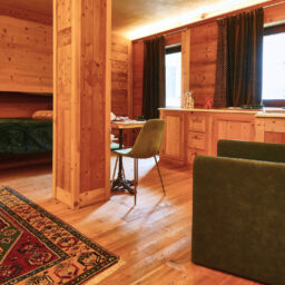 La nostra Suite è un'oasi di bellezza. Interamente foderata in legno è composta da un ampio spazio living con divano letto e due letti sovrapposti, una camera da letto matrimoniale, bagno con doccia. Rende l'ambiente ricercato e raffinato la stile dell'arredo e il comfort.